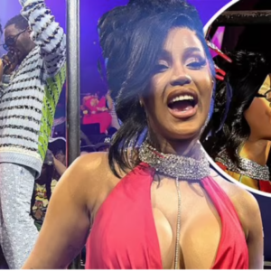 Cardi B flaunts cleavage in red plunging dress while performing with husband Offset at New Year’s Eve bash in Miami