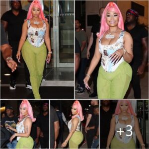 “Nicki Minaj Rocks Bold Pink Hair and Green Mesh Pants After Showstopping VMA Performance in New York City Hotel Checkout”