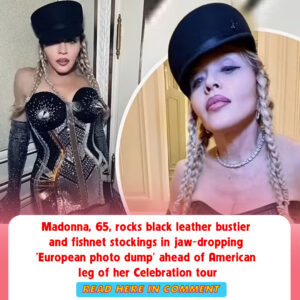 Madonna, 65, rocks black leather bustier and fishnet stockings in jaw-dropping ‘European photo dump’ ahead of American leg of her Celebration tour