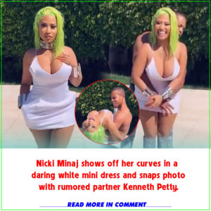 Nicki Minaj shows off her curves in a daring white mini dress and snaps photos with rumored partner Kenneth Petty.