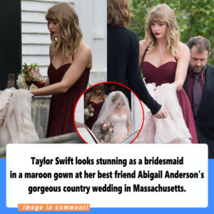 Taylor Swift stuns in maroon gown as she acts as bridesmaid