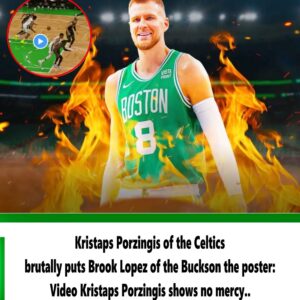 Kristaps Porzingis of the Celtics brutally puts Brook Lopez of the Bucks on the poster: Kristaps Porzingis shows no mercy.. Celtics star Kristaps Porzingis showed no mercy…