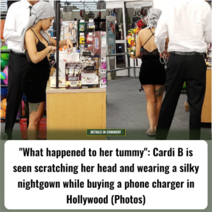 “What happened to her tummy”: Cardi B is seen scratching her head and wearing a silky nightgown while buying a phone charger in Hollywood (Photos)