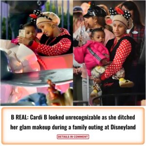 B REAL: Cardi B looked unrecognizable as she ditched her glam makeup during a family outing at Disneyland