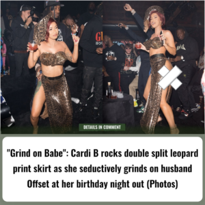 “Grind on Babe”: Cardi B rocks double split leopard print skirt as she seductively grinds on husband Offset at her birthday night out (Photos)