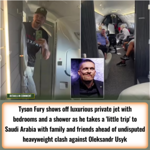 Tyson Fury shows off luxurious private jet with bedrooms and a shower as he takes a ‘little trip’ to Saudi Arabia with family and friends ahead of undisputed heavyweight clash against Oleksandr Usyk
