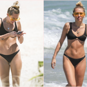 Miley Cyrus Turns Heads with her Remarkable Toned Figure in a Sultry Black Bikini at Byron Bay Beach alongside Fiancé Liam Hemsworth