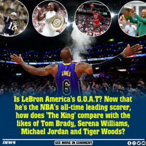 Is LeBron America’s G.O.A.T? Now that he’s the NBA’s all-time leading scorer, how does ‘The King’ compare with the likes of Tom Brady, Serena Williams, Michael Jordan and Tiger Woods?