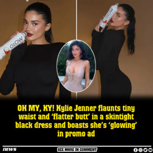 OH MY, KY! Kylie Jenner flaunts tiny waist and ‘flatter butt’ in a skintight black dress and boasts she’s ‘glowing’ in promo ad
