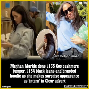 Meghan Markle dons £135 Cos cashmere jumper, £154 black jeans and branded hoodie as she makes surprise appearance as ‘intern’ in Clevr advert