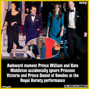 Awkward moment Prince William and Kate Middleton accidentally ignore Princess Victoria and Prince Daniel of Sweden at the Royal Variety performance