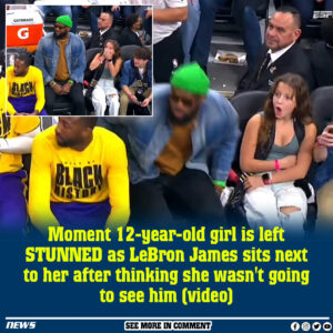 Moment 12-year-old girl is left STUNNED as LeBron James sits next to her after thinking she wasn’t going to see him (video)