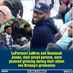 LeParents! LeBron and Savannah James, their proud parents, were pictured grinning during their oldest son Bronny’s graduation