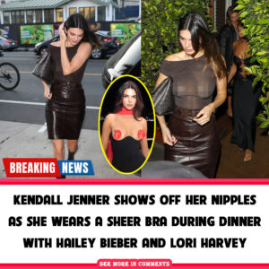 Kendall Jenner shows off her nipples as she wears a sheer bra during dinner with Hailey Bieber and Lori Harvey