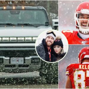 Travis Kelce battles through the snow in Kansas City as he heads for practice in his Hummer -TH