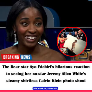 The Bear star Ayo Edebiri had her castmates in stitches on Sunday after her hilarious response to being presented with co-star Jeremy Allen White’s recent racy Calvin Klein…