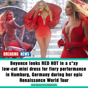 Beyonce looks RED HOT in a s*xy low-cut mini dress for fiery performance in Hamburg, Germany during her epic Renaissance World Tour -TH