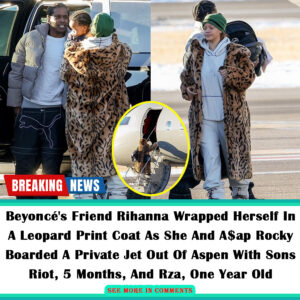 Beyoncé’s Friend Rihanna Wrapped Herself In A Leopard Print Coat As She And A$ap Rocky Boarded A Private Jet Out Of Aspen With Sons Riot, 5 Months, And Rza, One Year Old.