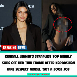 Kendall Jenner’s strapless top nearly slips off her thin frame after Kardashian fans suspect model ‘got a boob job’