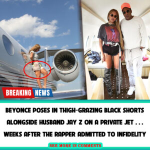 Beyonce poses in thigh-grazing black shorts alongside husband Jay Z on a private jet… weeks after the rapper admitted to infidelity