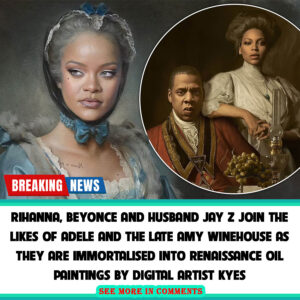 Rihanna, Beyonce and husband Jay Z join the likes of Adele and the late Amy Winehouse as they are immortalised into Renaissance oil paintings by digital artist Kyes