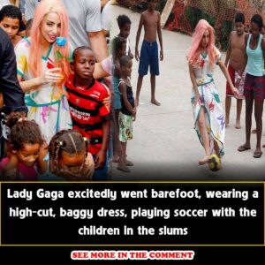 Lady Gaga excitedly went barefoot, wearing a high-cut, baggy dress, playing soccer with the children in the slums