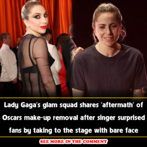 (X) Lady Gaga’s glam squad shares ‘aftermath’ of Oscars make-up removal after singer surprised fans by taking to the stage with bare face