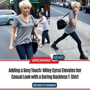 Adding a S-xy Touch: Miley Cyrus Elevates her Casual Look with a Daring Backless T-Shirt.xt