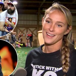 The wife of Jason Kelce appeared on the brothers’ ‘New Heights’ podcast on Friday. Kylie Kelce has no problem using her brother-in-law Travis Kelce’s romance with Taylor Swift to her advantage….
