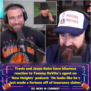 Travis and Jason Kelce have hilarious reaction to Tommy DeVito’s agent on ‘New Heights’ podcast: ‘He looks like he’s just made a fortune off of insurance claims’