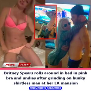 Britney Spears rolls around in bed in pink bra and undies after grinding on hunky shirtless man at her LA mansion