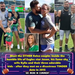Meet the OTHER Kelce couple: Inside the humble life of Eagles star Jason, his fame-shy wife Kylie and their three adorable kids – after they met on a disastrous TINDER date in 2015