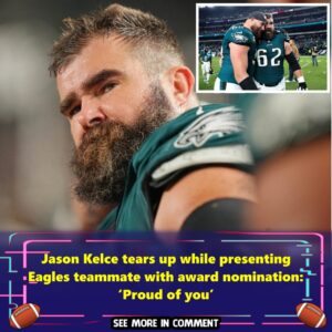Jason Kelce tears up while presenting Eagles teammate with award nomination: ‘Proud of you’