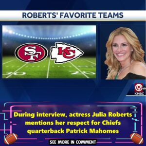 During interview, actress Julia Roberts mentions her respect for Chiefs quarterback Patrick Mahomes