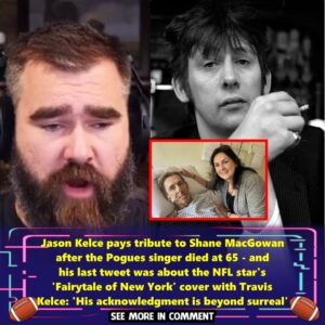 Jason Kelce pays tribute to Shane MacGowan after the Pogues singer died at 65 – and his last tweet was about the NFL star’s ‘Fairytale of New York’ cover with Travis Kelce: ‘His acknowledgment is beyond surreal’