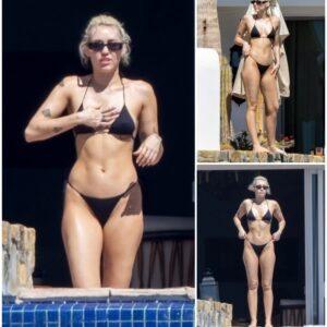 Miley Cyrus, the epitome of contemporary cool, takes vacation glamour to a new level as she captivates onlookers in a beautiful blue swimsuit, striking a pose beside…
