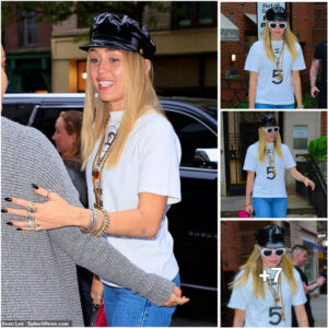 Miley Cyrus’ Big Apple Adventure: A Unique Fashion Statement with Leather Newsboy Cap and Playful White Sunglasses In a sartorial spectacle that turned heads in the bustling…
