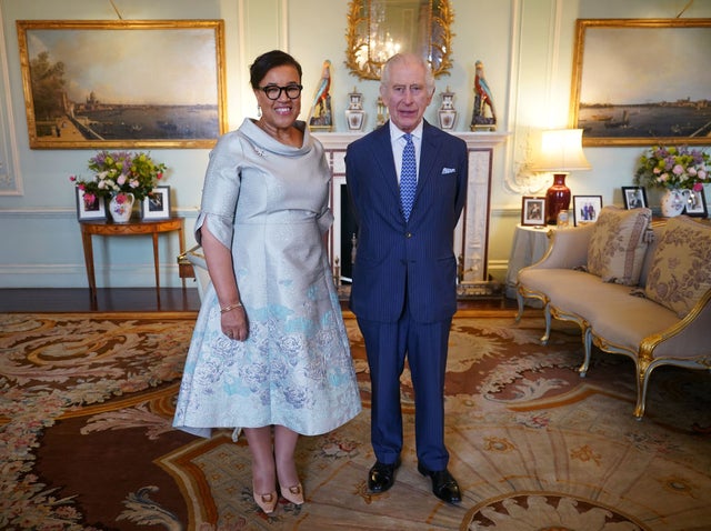 King Charles III during an audience with Commonwealth Secretary General, Baroness Scotland of Asthal, at Buckingham Palace on March 13, 2024 in London, England. – Yui Mok – WPA Pool/Getty Images