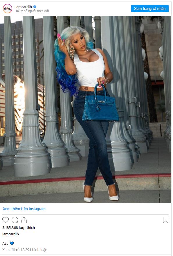 Cardi B captioned the photo with just one word, “Azul,” meaning “blue” in Spanish. She added a blue heart emoji to indicate her love of the color.