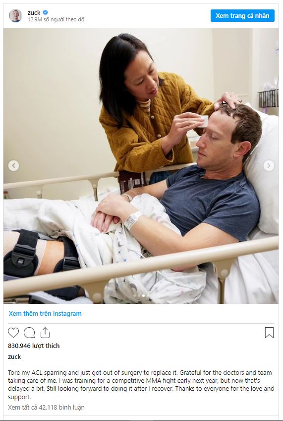 Mark Zuckerberg has suffered an ACL injury while sparring to prepare for a competitive MMA fight.