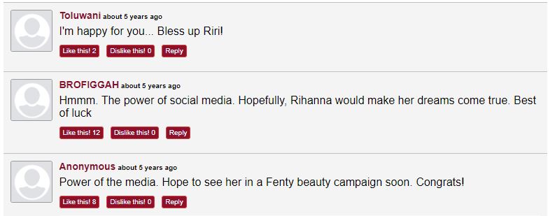 Thanks so much @badgalriri I can’t wait to get a message from your management soon and thanks so much every one who helped me get to this stage…. My confidence level got boosted more…. Dreams come true!!!! Dreams come true!!!! #badgirlriri