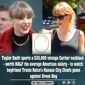 Taylor Swift sports a $30,000 vintage Cartier necklace – worth HALF the average American salary – to watch boyfriend Travis Kelce’s Kansas City Chiefs game against Green Bay