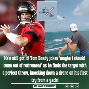 He’s still got it! Tom Brady jokes ‘maybe I should come out of retirement’ as he finds the target with a perfect throw, knocking down a drone on his first try from a yacht