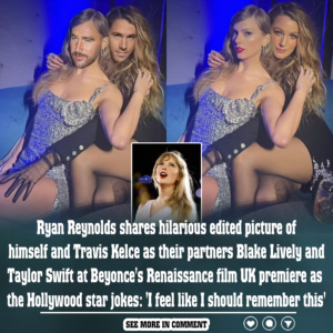Ryan Reynolds has shared a hilarious edited picture of himself and Travis Kelce as their respective partners Blake Lively and Taylor Swift at Beyonce‘s Renaissance film U.K premiere, as the Hollywood star joked: ‘I feel…