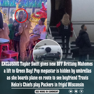 Taylor Swift boarded a jet alongside Brittany Mahomes, with the pop star heading to Lambeau Field to see boyfriend Travis Kelce and the Kansas City Chiefs take on the Green Bay Packers in snowy…