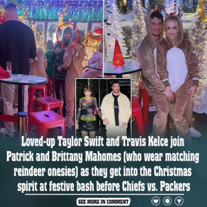 Travis Kelce and Taylor Swift got into the Christmas spirit early as they joined Patrick and Brittany Mahomes for a festive bash on Friday night. The Mahomes donned matching reindeer onesies for what appeared…