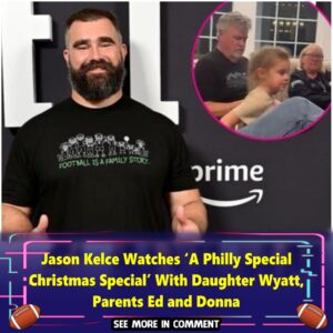 Jason Kelce Watches ‘A Philly Special Christmas Special’ With Daughter Wyatt, Parents Ed and Donna