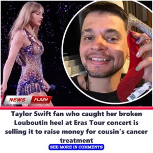 Taylor Swift fan who caught her broken Louboutin heel at Eras Tour concert is selling it to raise money for cousin’s cancer treatment…