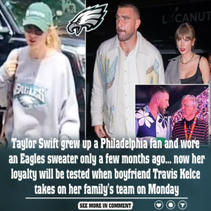 Taylor Swift grew up a Philadelphia fan and wore an Eagles sweater only a few months ago… now her loyalty will be tested when boyfriend Travis Kelce takes on her family’s team on Monday