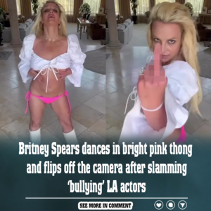 Britney Spears dances in bright pink thong and flips off the camera after slamming ‘bullying’ LA actors